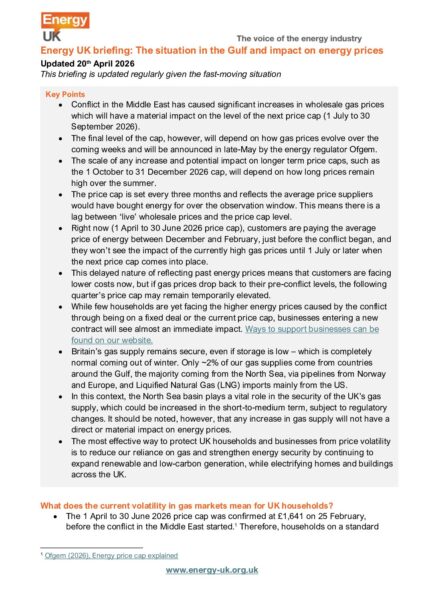 - Conflict in the Middle East has caused significant increases in wholesale gas prices which will have a material impact on the level of the next price cap (1 July to 30 September 2026).