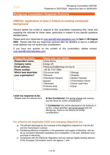 Energy UK response to CMP435: Application of Gate 2 Criteria to existing contracted background consultation