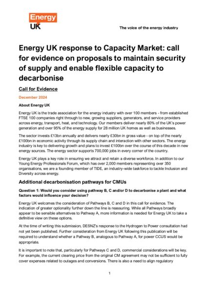 Energy UK response to DESNZ Capacity Market Call for Evidence