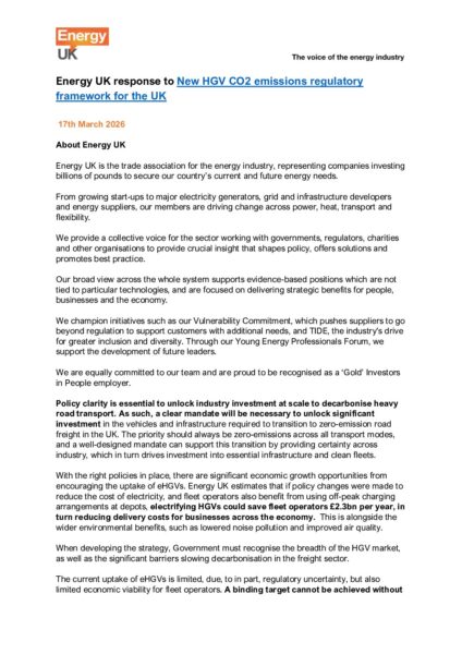 Energy UK response to New HGV CO2 emissions regulatory framework for the UK