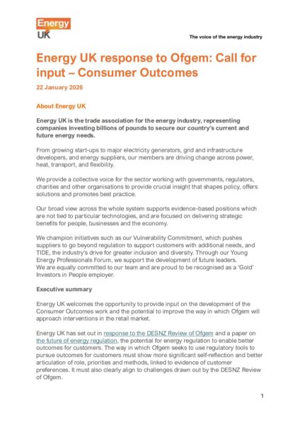 Energy UK welcomes the opportunity to provide input on the development of the Consumer Outcomes work and the potential to improve the way in which Ofgem will approach interventions in the retail market.
