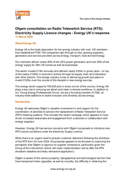 Energy UK response to Ofgem consultation on Radio Teleswitch Service (RTS): Electricity Supply Licence changes