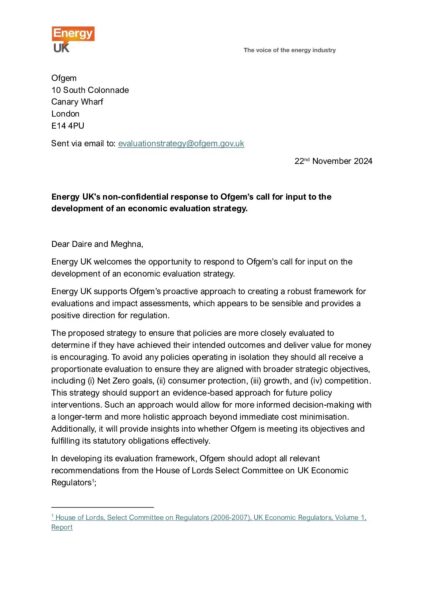 Energy UK response to Ofgem’s call for input to the development of an economic evaluation strategy