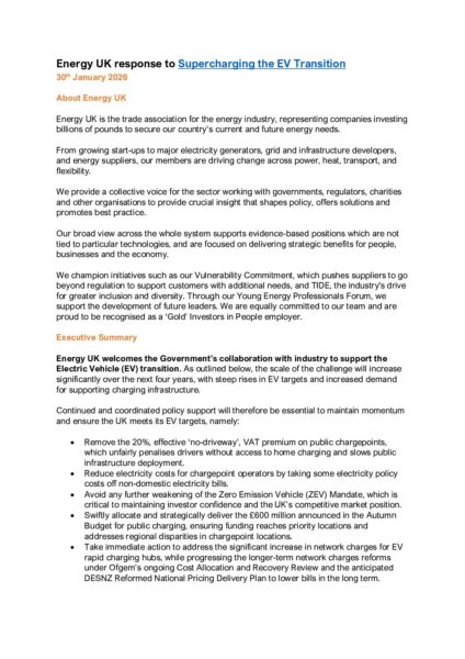 - Take immediate action to address the significant increase in network charges for EV rapid charging hubs, while progressing the longer-term network charges reforms under Ofgem’s ongoing Cost Allocation and Recovery Review and the anticipated DESNZ Reformed National Pricing Delivery Plan to lower bills in the long term.