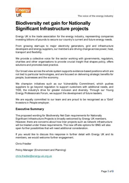 Energy UK Response to the Consultation on Biodiversity Net Gain for Nationally Significant Infrastructure Projects
